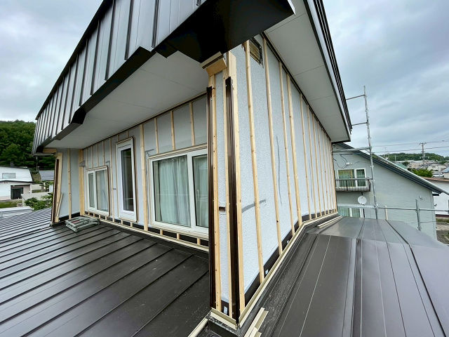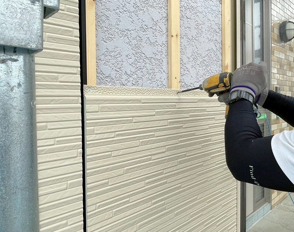 既存の外壁材の上に木下地を取り付け、その上から新しい外壁材を張ります。