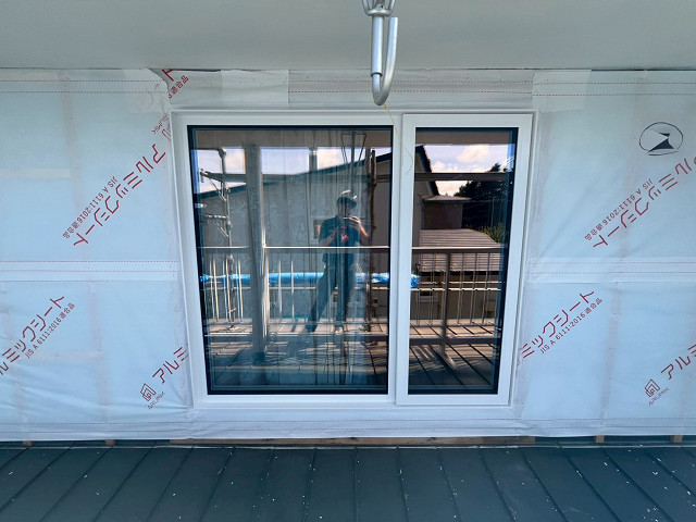 今回外壁を剥がしたところ、透湿防水シートが施工されていなかったため、透湿防水シートを新たに張りました。