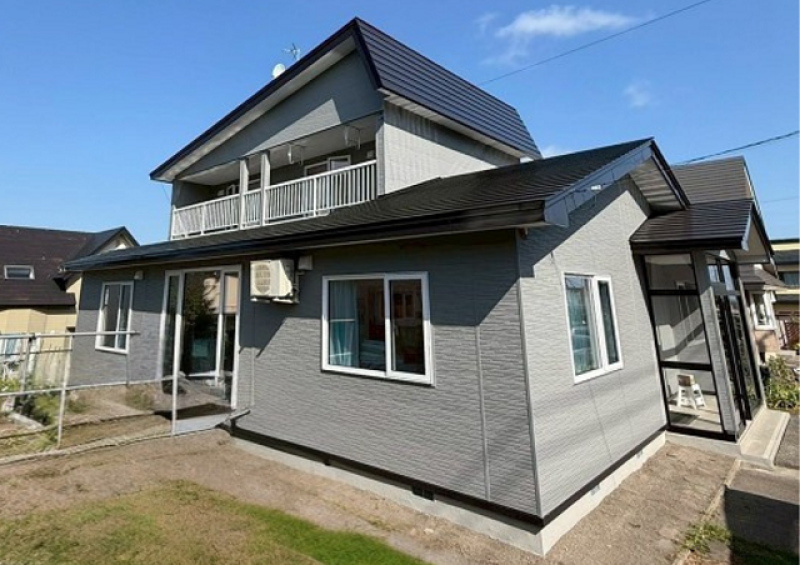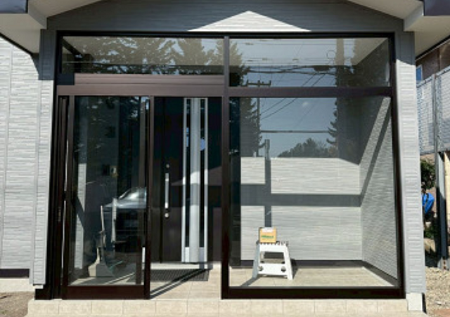 網走市 A様邸 サッシ・玄関ドア・風除室・金属サイディング・屋根塗装(フッ素)・玄関タイル工事