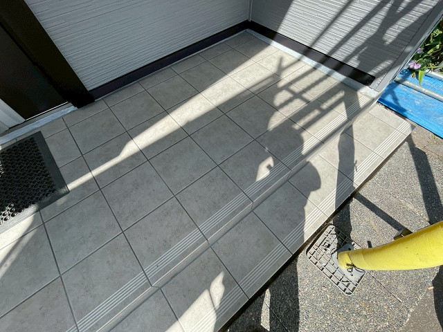 既存のタイルを剥がし、下地をモルタルでしっかりと整えたうえで、新しいタイルに張り替えました。