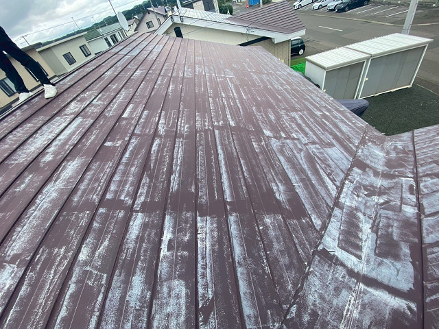 屋根は全体的に色あせチョーキングを超えて塗膜がない状態でした。