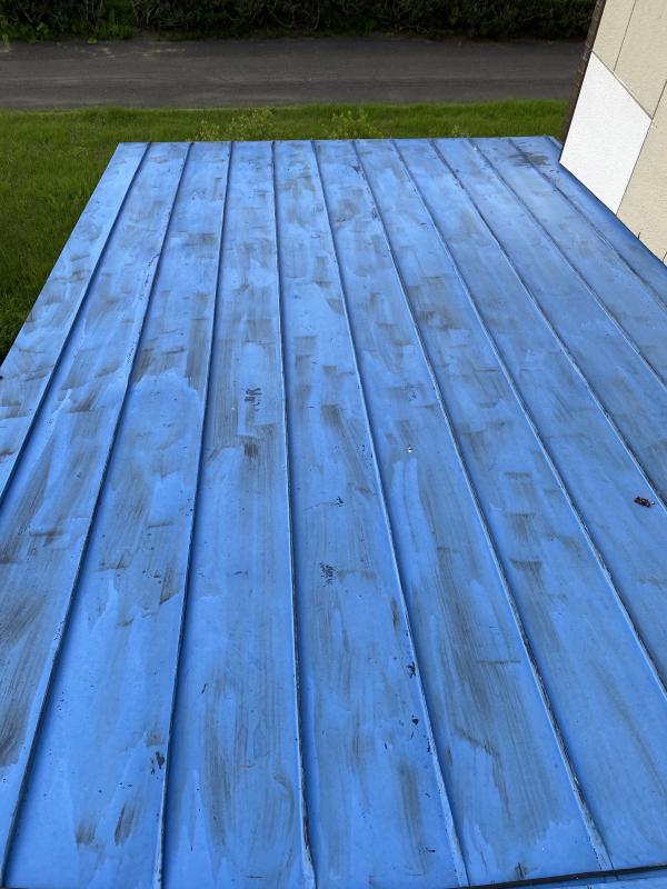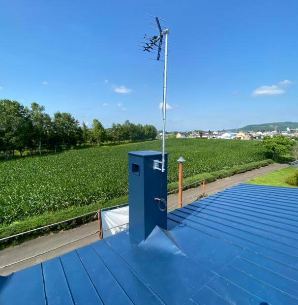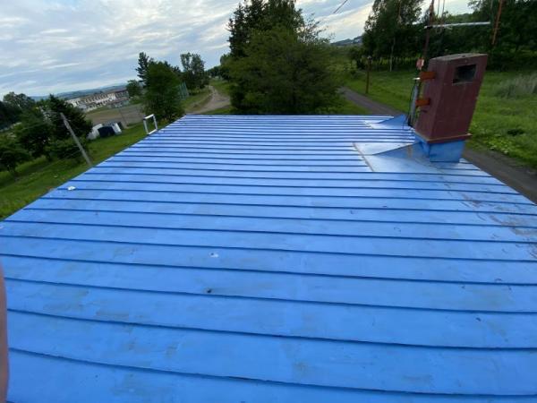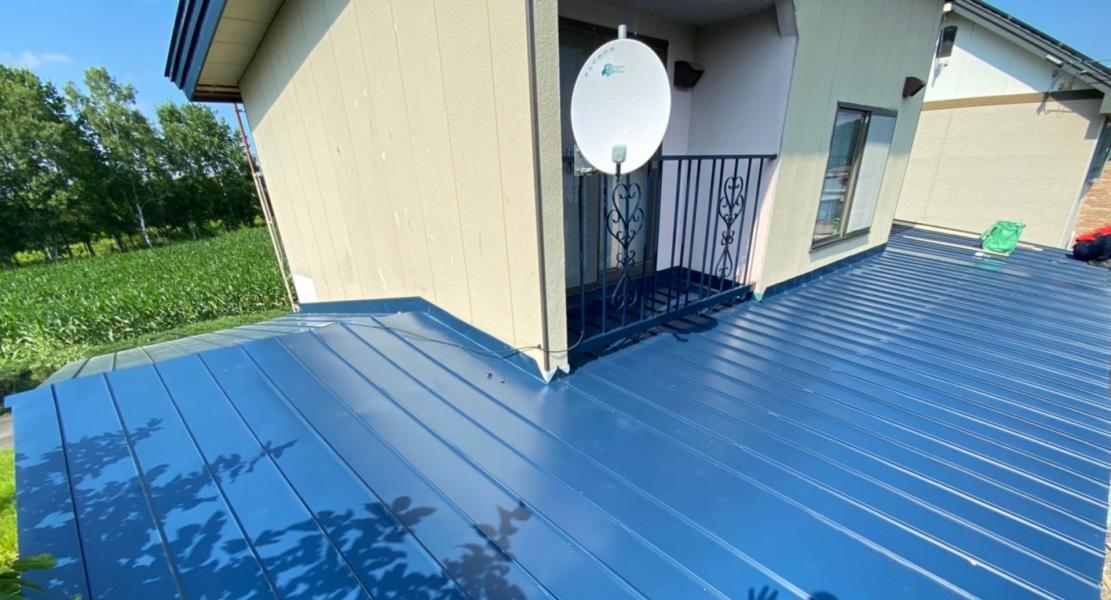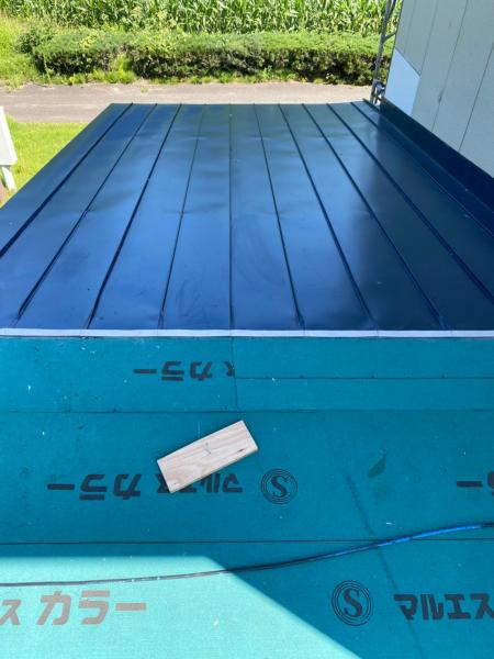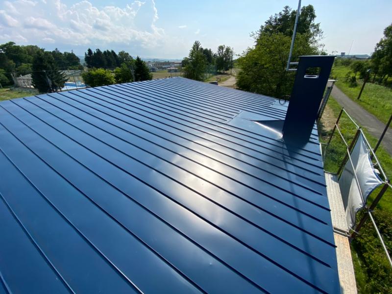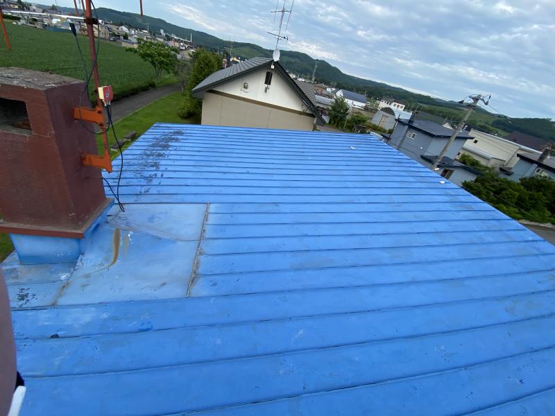色は既存屋根材に近いブルーで仕上げ、