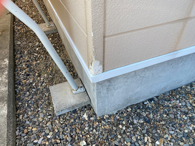窯業サイディングは凍害の影響を受けやすく、写真の様に出隅下部の塗膜が剥がれてしまうことがよくあります!