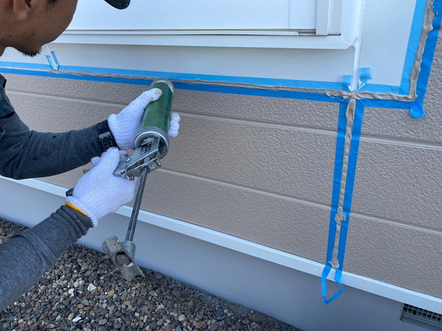 既存のコーキングを撤去し新しいコーキングを注入していきます(^^)/