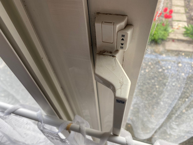 経年劣化によりドアノブ(グレモンハンドル)が割れていましたので交換していきます。