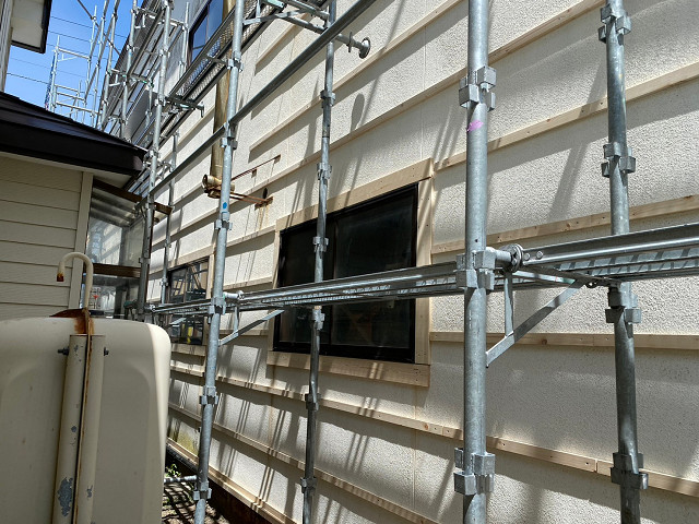 既存のモルタル外壁の上から新しい外壁材を張っていきます!