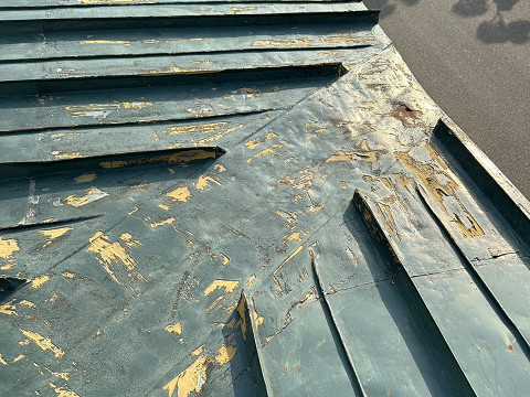 経年劣化により全体的に塗膜が剥がれ、サビや凹みも見られました。