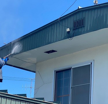 表面に付いた汚れや古い塗膜を高圧洗浄機を使って洗い流していきます。