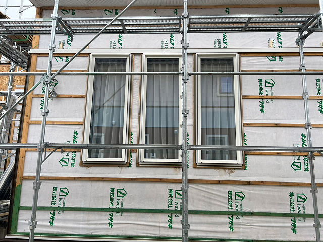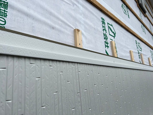 既存の外壁材を剥がし、新しい外壁材を張っていきます。