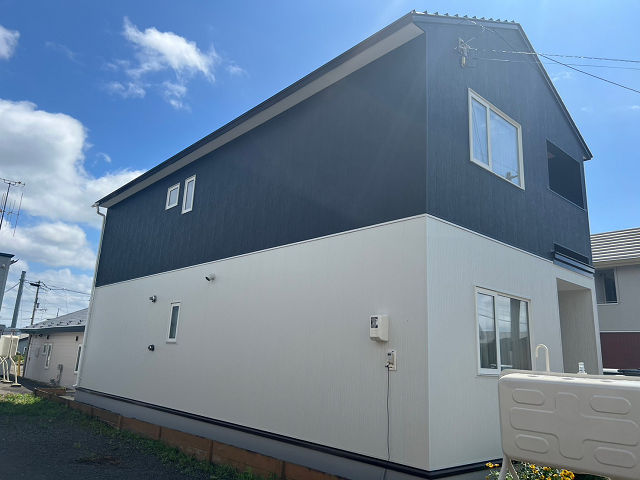 | 仕様 | 屋根:ガイソールーフガードネオF(色:R-10)外壁:プレシャスウッドF(色:チャコールブラック),スレンダラインF(色:ソフトホワイト) |