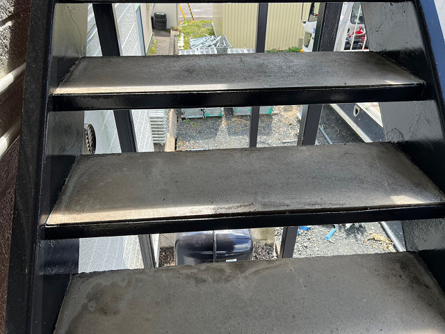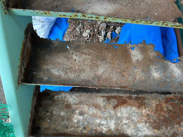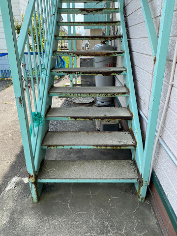 サビが酷く踏み板のモルタルもひびが入っていました。