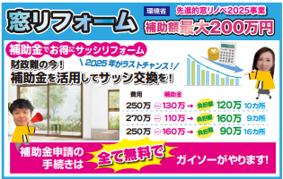 今年はサッシ交換リフォームに使える大型補助金の最後の年なんです。