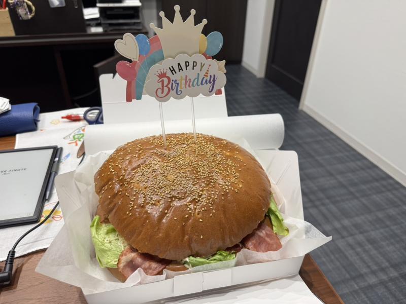 そして、今月誕生日の私と社長に、サプライズでパーティーハンバーガーをいただきました。